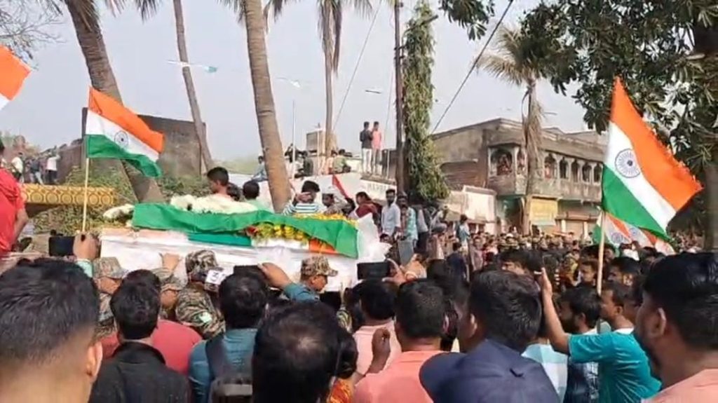 বৃহস্পতিবার বিকেলে শহীদ জওয়ানের মরদেহ বিমানে করে দুর্গাপুর বিমানবন্দরে আনা হয়। সেখান থেকে মরদেহ নিয়ে যাওয়া হয় পানাগর বায়ু সেনাঘাঁটিতে। এরপর শুক্রবার সকালে তাঁর মরদেহ নিয়ে আসা হয় তার নিজের বাড়ি মামড়া বাজারের বিদ্যাসাগর পল্লীতে।