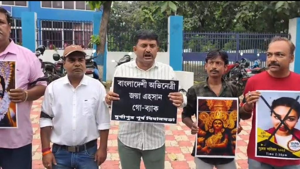 বাংলাদেশের জনপ্রিয় অভিনেত্রী জয়া এহসান দুর্গাপুরের দুর্গাপূজা কার্নিভালে বিশেষ অতিথি হিসেবে উপস্থিত থাকবেন – এমন ঘোষনার পরেই চড়ল রাজনৈতিক পারদ। বিষয়টি ঘিরে ক্ষোভে ফেটে পড়লো বিজেপি শনিবার দুর্গাপুর মহকুমা শাসকের দপ্তরের সামনে এবং এসডিও বাংলোর সামনে মানববন্ধন ও প্রতিবাদ কর্মসূচি আয়োজন করে বিজেপি কর্মী ও নেতৃত্বরা। বিজেপি জেলা সহ সভাপতি চন্দ্রশেখর বন্দ্যোপাধ্যায় বলেন, “এক বাংলাদেশী নাগরিককে রাজ্য সরকারের পুজো কার্নিভাল মঞ্চে আমন্ত্রণ জানানো অত্যন্ত দায়িত্বজ্ঞানহীন সিদ্ধান্ত। রাজ্যে নিজস্ব শিল্পী ও সংস্কৃতিকে উপেক্ষা করে বাইরে থেকে তারকা এনে গ্ল্যামার দেখানো মানে বাংলার শিল্পীদের অপমান।”