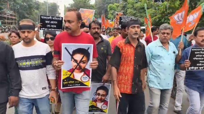 বাংলাদেশের জনপ্রিয় অভিনেত্রী জয়া এহসান দুর্গাপুরের দুর্গাপূজা কার্নিভালে বিশেষ অতিথি হিসেবে উপস্থিত থাকবেন – এমন ঘোষনার পরেই চড়ল রাজনৈতিক পারদ। বিষয়টি ঘিরে ক্ষোভে ফেটে পড়লো বিজেপি শনিবার দুর্গাপুর মহকুমা শাসকের দপ্তরের সামনে এবং এসডিও বাংলোর সামনে মানববন্ধন ও প্রতিবাদ কর্মসূচি আয়োজন করে বিজেপি কর্মী ও নেতৃত্বরা। বিজেপি জেলা সহ সভাপতি চন্দ্রশেখর বন্দ্যোপাধ্যায় বলেন, “এক বাংলাদেশী নাগরিককে রাজ্য সরকারের পুজো কার্নিভাল মঞ্চে আমন্ত্রণ জানানো অত্যন্ত দায়িত্বজ্ঞানহীন সিদ্ধান্ত। রাজ্যে নিজস্ব শিল্পী ও সংস্কৃতিকে উপেক্ষা করে বাইরে থেকে তারকা এনে গ্ল্যামার দেখানো মানে বাংলার শিল্পীদের অপমান।”