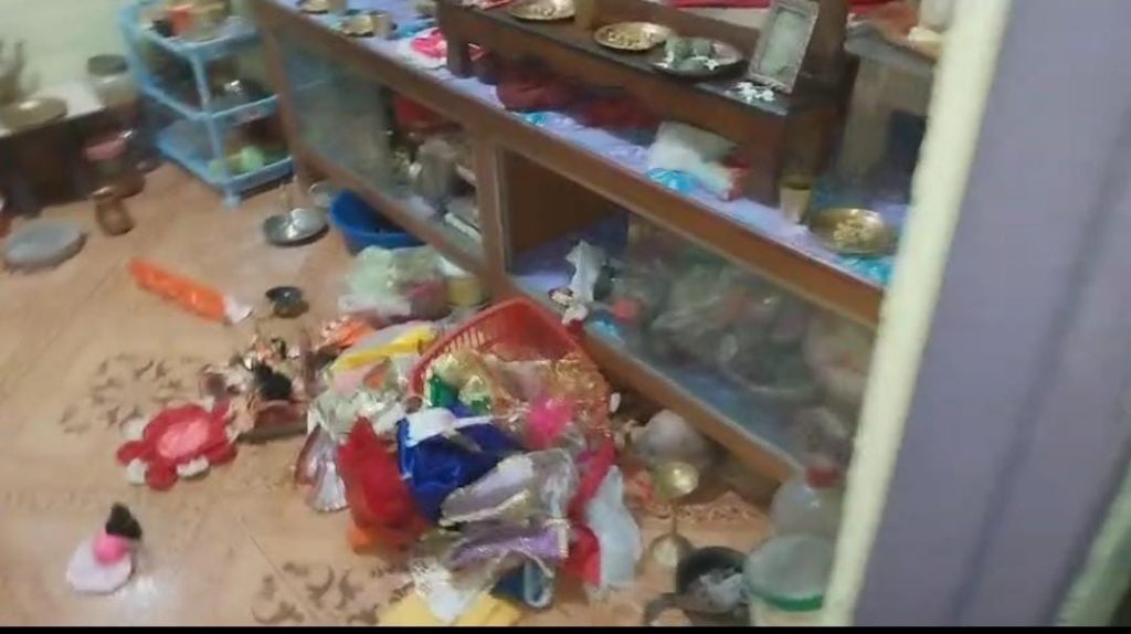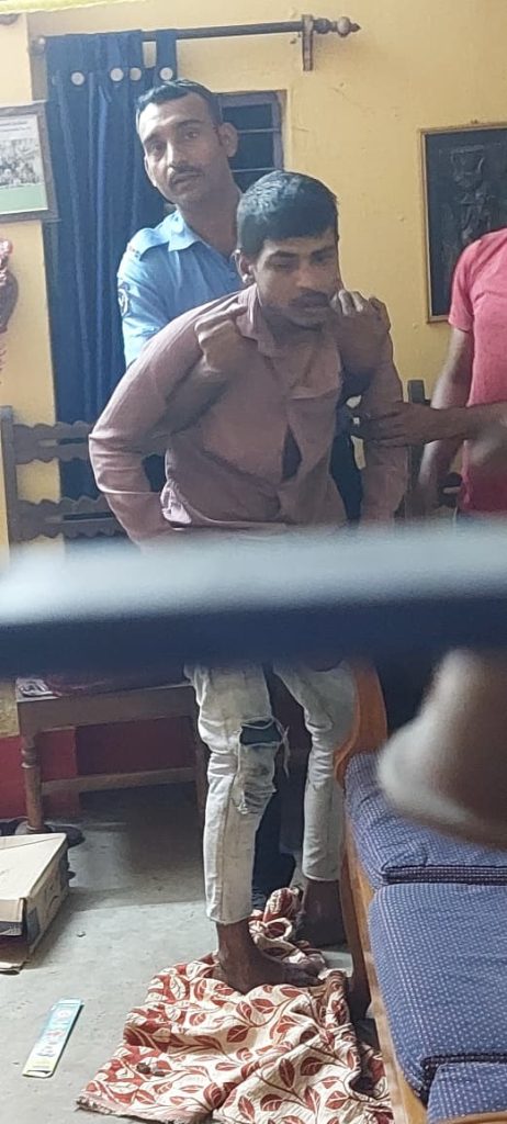 খবর পেয়ে দুর্গাপুর থানা পুলিশ ঘটনাস্তরে পৌঁছে ওই ভাঙ্গা অ্যাডরেস্টারের অংশ দিয়ে ভেতরে প্রবেশ করে দেখে ঘরের ভেতরে এক যুবক রয়েছে ঘরের মধ্যে যত্রতত্ত্ব ছড়িয়ে পড়ে রয়েছে জামা কাপড় আসবাবপত্র এমনকি ঠাকুর ঘরের সামগ্রীয় এলোমেলো অবস্থায়। ভাঙ্গা হয়েছে দুটি আলমারি, খাট এবং একটি শোকেস। দুষ্কৃতীকে ধরতে গেলে সে আচমটাই টিউবলাইট ছিড়ে ঘর অন্ধকার করে আত্মহত্যার চেষ্টা করে।