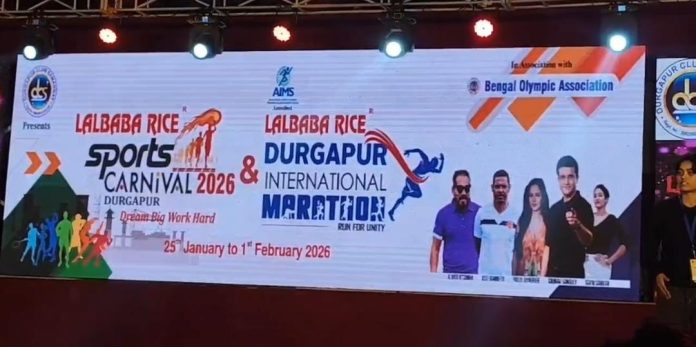 দুর্গাপুর ক্লাব সমন্বয় কর্তৃক আয়োজিত এবং বেঙ্গল অলিম্পিক অ্যাসোসিয়েশনের সহযোগিতায় লালবাবা রাইস দুর্গাপুর স্পোর্টস কার্নিভাল ২০২৬ এর শুভ উদ্বোধন হয়ে গেল রবিবার সকালে। আন্তর্জাতিক মেরাসুন দৌড় দিয়ে শুরু হয় স্পোর্টস কার্নিভাল ২০২৬। এই অনুষ্ঠানে উপস্থিত ছিলেন প্রাক্তন ভারতীয় ফুটবলার হোসে ব্যারেট, এশিয়ান স্বর্ণপদক বিজয়ী সোমা বিশ্বাস, এশিয়ান ব্রোঞ্জ পদক বিজয়ী হিমাশ্রী রায়, মিসেস ইন্ডিয়া সাইনী সরকার, বেঙ্গল অলিম্পিক অ্যাসোসিয়েশনের সভাপতি চন্দন রায়চৌধুরী, লালবাবা রাইসের পরিচালক পার্থসারথি নন্দী, দুর্গাপুর ক্লাব সমন্বয়ের সভাপতি সন্দীপ দে এবং রেস ডিরেক্টর প্রশান্ত সাহা ও বিশিষ্ট ব্যক্তিবর্গ। ২১ কিমি,১০ কিমি, ৫ কিমিও ২ কিমি দৌড় বিভাগে বিভিন্ন বয়সের এবং পটভূমির তিন হাজারেরও বেশি দৌড়বিদ উৎসাহের সঙ্গে অংশগ্রহণ করেন।