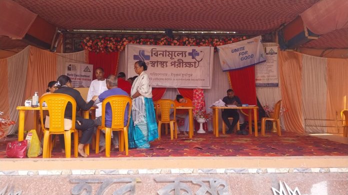 দুর্গাপুর ইসকনের উদ্যোগে বিনামূল্যে স্বাস্থ্য পরীক্ষা শিবিরের আয়োজন করা হয়। মঙ্গলবার সকাল থেকে দুর্গাপুর ইসকন মন্দিরে একটি বেসরকারি সুপার স্পেশালিটি হাসপাতালের সহযোগিতায় এই শিবির চলে। এদিন শিবিরে চক্ষু পরীক্ষা, বিনামূল্যে ছানি অপারেশন এবং স্ত্রীরোগ ও প্রসব চিকিৎসা সংক্রান্ত বিষয়ে বিভিন্ন মানুষের পরীক্ষা করা হয়।