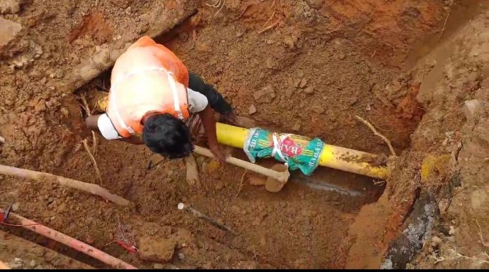 দুর্গাপুরের সিটি সেন্টার রঘুনাথ মুর্মু সরণিতে হঠাৎ গ্যাস পাইপ লাইন ছুটে যাওয়ার এলাকায় চাঞ্চল্য। অল্পের জন্য বড় দুর্ঘটনার হাত থেকে রক্ষা পেলে এলাকা। স্থানীয় সূত্রে জানা গেছে, ইন্ডিয়ান অয়েল কর্পোরেশন ও আদানি গ্যাস পাইপলাইন আচমকাই ফেটে যায় ও গ্যাস বের হতে দেখা যায়। এর ফলে আশেপাশে এলাকায় আতঙ্কের পরিবেশ সৃষ্টি হয়। গ্যাস পাইপ লাইনের ঠিকাদার ফিরোজ খান জানান, দুর্গাপুর পুরসভার জলের পাইপ লাইনের মেরামতির কাজ চলছিল ওই এলাকায়। সেই সময় অসাবধানতাবশত গ্যাস পাইপলাইনে আঘাত লাগে এবং পাইপলাইন ফেটে যায়।