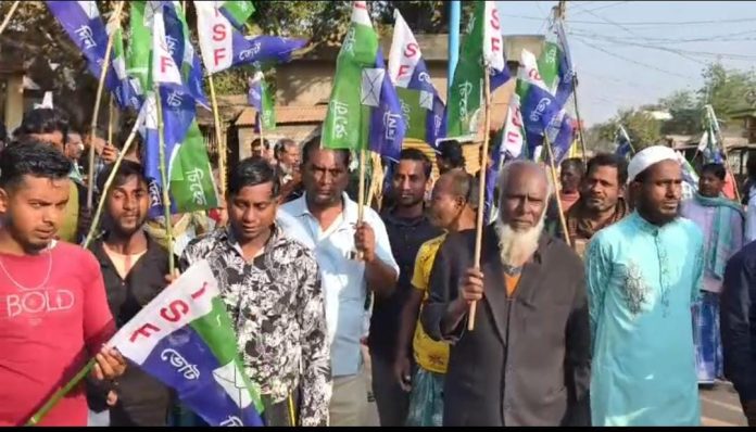 বিধানসভা নির্বাচনের দিন যত এগিয়ে আসছে ততই রাজ্য রাজনীতিতে উত্তাপ বাড়ছে। এক ইঞ্চি জমি ছাড়তে নারাজ শাসক ও বিরোধী — দুই পক্ষই। রাজনৈতিক টানা পোড়েনর মাঝেই ঘাঁটি শক্ত করতে মাঠে নেমেছে নওশাদ সিদ্দিকীর দল আইএসএফ। রাজ্যের বিভিন্ন প্রান্তে যেমন বাড়ছে সদস্য সংখ্যা তেমনি দুর্গাপুরে ফরিদপুরের জেমুয়া এলাকাতেও দলীয় পতাকা হাতে মিছিলের নামলো আইএসএফ কর্মী সমর্থকরা। দুর্গাপুর ফরিদপুরের জামা এলাকায় দেখা গেল আইএসএফের শক্তি প্রদর্শন মিছিল জুড়ে উঠল একটা স্লোগান — “শিরায় শিরায় রক্ত ভাইজানের ভক্ত”। আইএসইএফ কর্মীদের দাবি তৃণমূল ও বিজেপির অপসাশনের বিরুদ্ধে মানুষ এবার বিকল্প খুঁজছে। সেই বিকল্প হিসেবেই আইএসএফের দিকে ঝুকছেন সব ধর্মের মানুষ। আরএসএফ সদস্য শেখ আব্দুল মান্নান জানান, “তৃণমূল আর বিজেপির অপশাসনের বিরুদ্ধে প্রতিবাদের আওয়াজ তুলেছে পাড়ায় পাড়ায় পতাকা বাঁধা হচ্ছে। ২০২৬ জনসভা নির্বাচনে এই এলাকা থেকে প্রার্থী দেওয়ার দাবি জানাবো নওশাদ সিদ্দিকীর কাছে।”