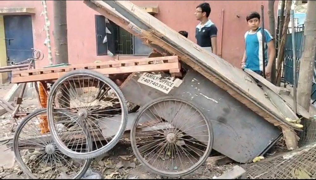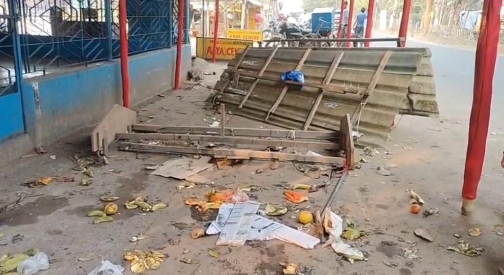 নিয়ন্ত্রণ হারিয়ে রাস্তার ধারে থাকা ফলের দোকানে ধাক্কা পুলিশ লেখা চারচাকা গাড়ি!