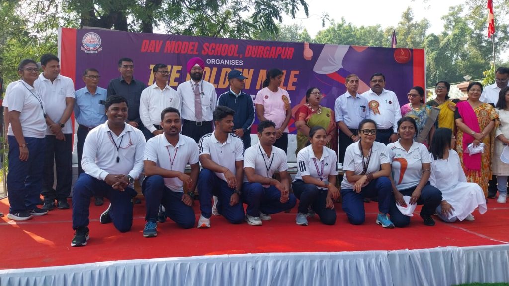 ডিএভি ইনস্টিটিউশনের উদ্যোগে দুর্গাপুরে রবিবার সকালে অনুষ্ঠিত হলো এক বিশেষ ক্রীড়া উৎসব – “দ্যা গোল্ডেন মাইল চ্যালেঞ্জ” ম্যারাথন দৌড় প্রতিযোগিতা। যা ছিল প্রতিষ্ঠানের ৫০ বছরের গৌরবময় যাত্রা কে স্মরণ করার এক অনন্য আয়োজন এই পাঁচ কিলোমিটার ম্যারাথন দৌড় প্রতিযোগিতা স্কুলের ফিটনেস ঐক্য ও অদম্য স্থিরিতের প্রতীক হিসেবে উদযাপিত হয়। অনুষ্ঠানের মূল স্লোগান ছিল “এটি শুধু শেষ লাইনে পৌঁছানোর বিষয় নয় বরং সেই যাত্রা যা অন্যদের তোমার সঙ্গে দৌড়াতে অনুপ্রাণিত করে।”( It’s not just about the finish line ; it’s about the journey that inspires others to run with you”)। তোর প্রতিযোগিতার সঙ্গে যুক্ত ছিল নগদ পুরস্কার ও শংসাপত্র। প্রতিটি অংশগ্রহণকারীর জন্য এটি ছিল অধ্যবসায়, গর্ব ও ফিটনেসের এক সুন্দর উদযাপন। এই অনুষ্ঠানে প্রধান অতিথি হিসাবে উপস্থিত ছিলেন প্রাক্তন অলিম্পিয়ান ও অর্জুন পুরস্কার প্রাপ্ত ক্রীড়াবি দ সোমা বিশ্বাস যিনি ভারতের অন্যতম শ্রেষ্ঠ মহিলা ক্যাপিড হিসেবে দেশকে আন্তর্জাতিক ক্ষেত্রে গৌরবান্বিত করেছেন।