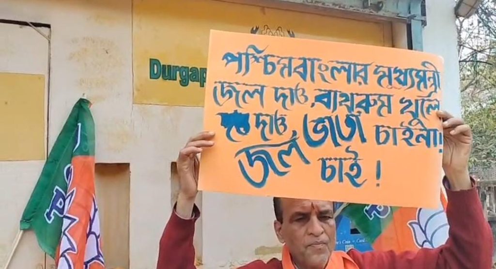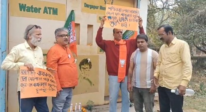 দুর্গাপুরে অচল জলের এটিএম ঘিরে বিজেপির অভিনব প্রতিবাদ।